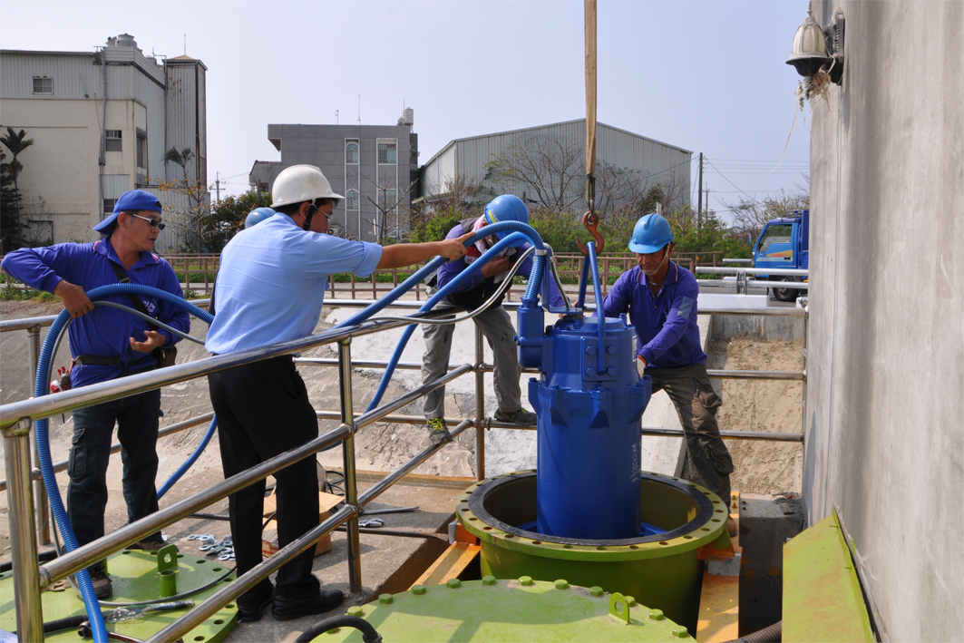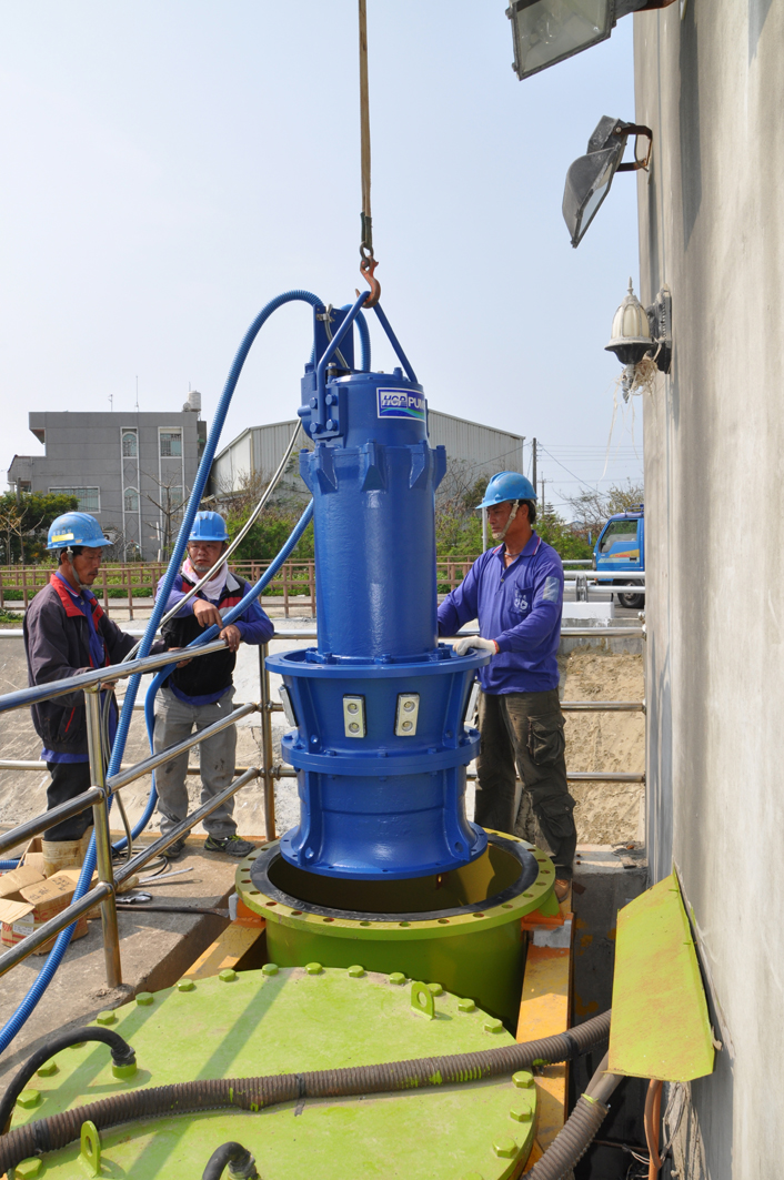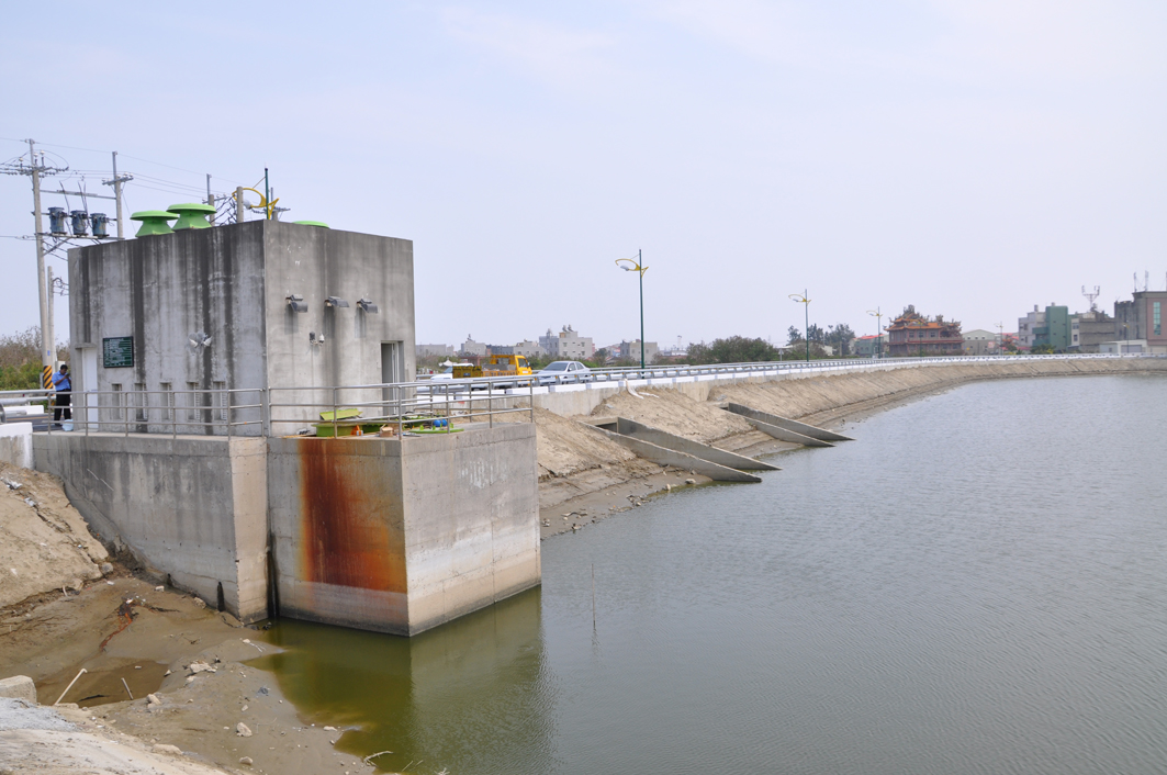 滯洪池通常位於河流、湖泊內,或鄰接處區域,就像是一座大型蓄水池,能將暴雨時的地表逕流暫時儲存,達到調節洪水之功效。本案位於嘉義縣布袋鎮東港社區,因嚴重地層下陷及海平面上升等問題,社區地勢已略低於海平面,當地居民長期飽受淹水之苦,為此,政府實施治水計畫,除了築建擋水牆及滯洪池外,並建立抽水站抽水。本案選用河見LA 大型軸流泵浦,適用於排除颱風期間地面水,為雨水、污水及海水混合抽水用。